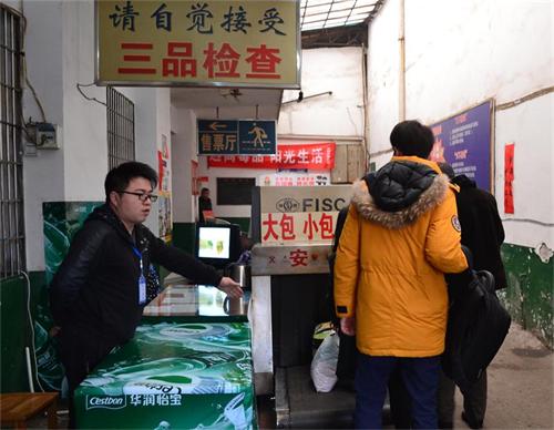 婁底汽車站工作人員認真指揮旅客接受行李過機安檢